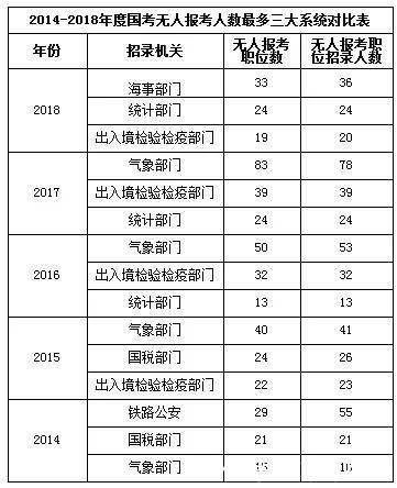 從近四年的無人報考數據來看,2018年度無人報考的職位少于2017年,這也說明了2018年國考的報名相對均衡,并未出現以往冷熱不均的現象。